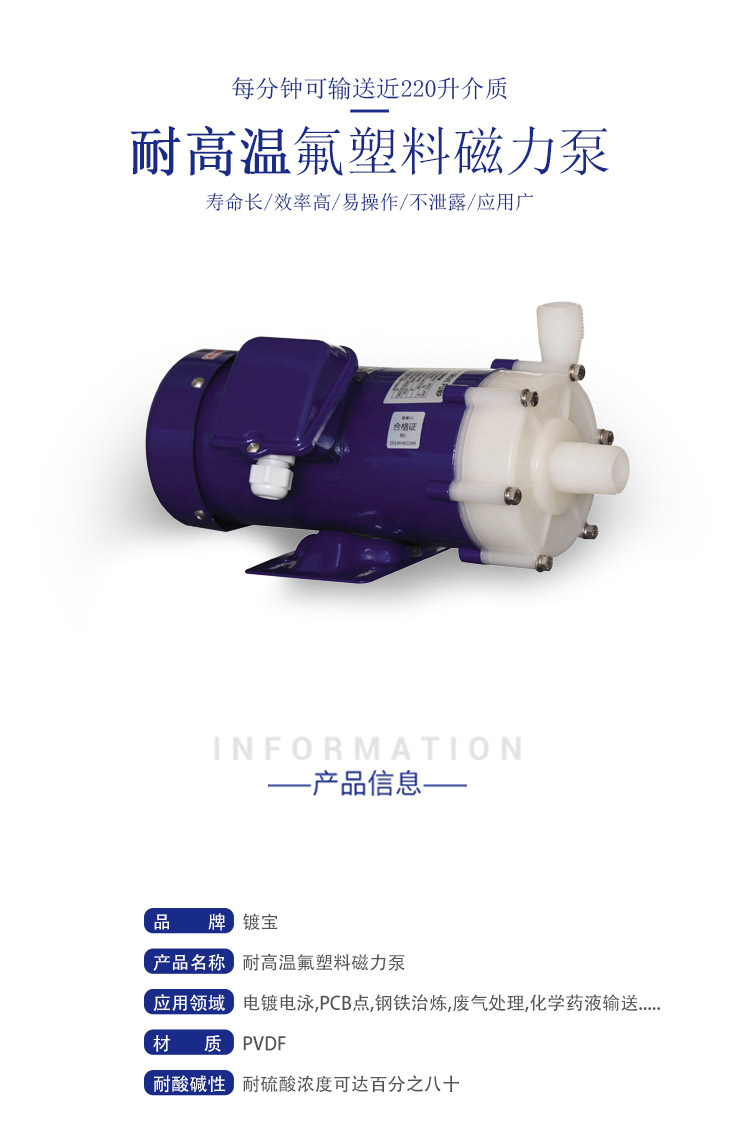 MD系列磁力泵結(jié)構(gòu)小巧,防漏, 在各個(gè)行業(yè)廣泛應(yīng)用,以其耐腐蝕性和耐用性而擁有廣大用戶的贊譽(yù)。主要材質(zhì)使用FRPP、PVDF ETFE ,可以用來輸送多種腐蝕性的液體。MD系列因其結(jié)構(gòu)小巧,非常適用于過濾、噴淋、清洗、蝕刻等各種表面處理相關(guān)工藝。